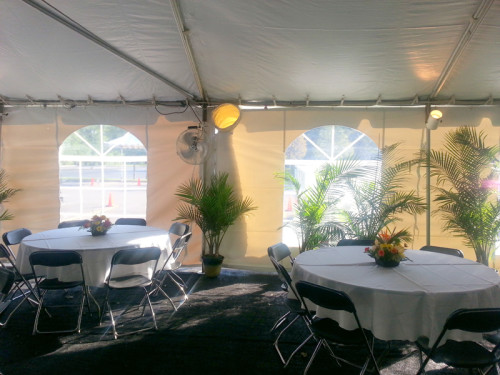 Surprise your guests with a comfortable environment even in the warmest conditions. When the temperature begins to rise, portable air conditioning units provide the cooling you need. They are located outside the tent along with the generator that provides the power. Cool air vents are installed throughout the tent. A thermostat inside the tent controls the temperature. Tent sides are needed to keep the air conditioned tent cool. The air conditioning units are extremely easy to operate allowing for worry free operation.