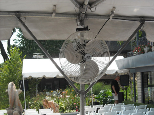 Fans keep the air moving and your guests comfortable. They can be free standing or mounted to tent poles. We also have barrel type industrial fans.