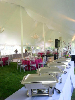 When you want to host an event at your home or corporate location, but need additional space a tent is a perfect solution. We rent tents in various sizes, colors, types and styles. In addition, you can choose from a variety of sidewall options and doors to enclose your tent. If you are planning an evening event, consider our lighting options. Chicago weather can be unpredictable. Add heating or air conditioning to keep your guests comfortable. No matter the size or scope of your event, whether you are planning a Wedding, Bar or Bat Mitzvah celebration, Company Picnic, Birthday party or Holiday event, a tent creates a festive atmosphere that your guests will love.