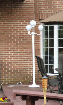 Lamp Posts are 6’ tall white street lights with 4 globe lights that add a functional fun look to decks and patios that have limited lighting and create additional areas for guests to mingle.