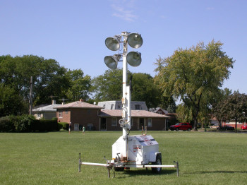 Tower Lights with a self-contained generator can illuminate a large outdoor area.